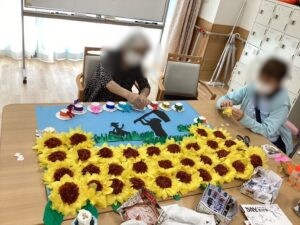 さっそく壁に飾らせてもらうと、デイケアの雰囲気も夏らしくなりました。