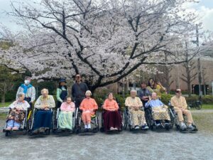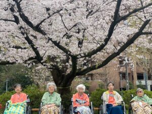 3月30日、暖かく気持ちの良い春の日となり、介護老人保健施設紅梅園から徒歩3分ほどの公園へお花見に出かけました。
