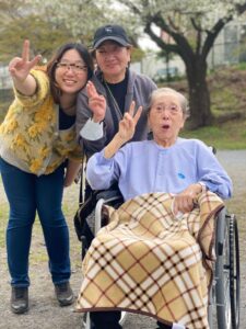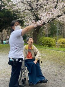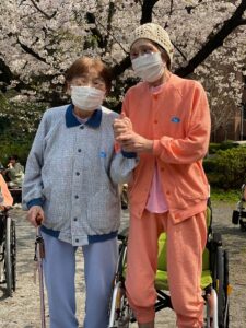この日はちょうど面会に来られていたご家族もいらっしゃり、一緒にお花見へ。