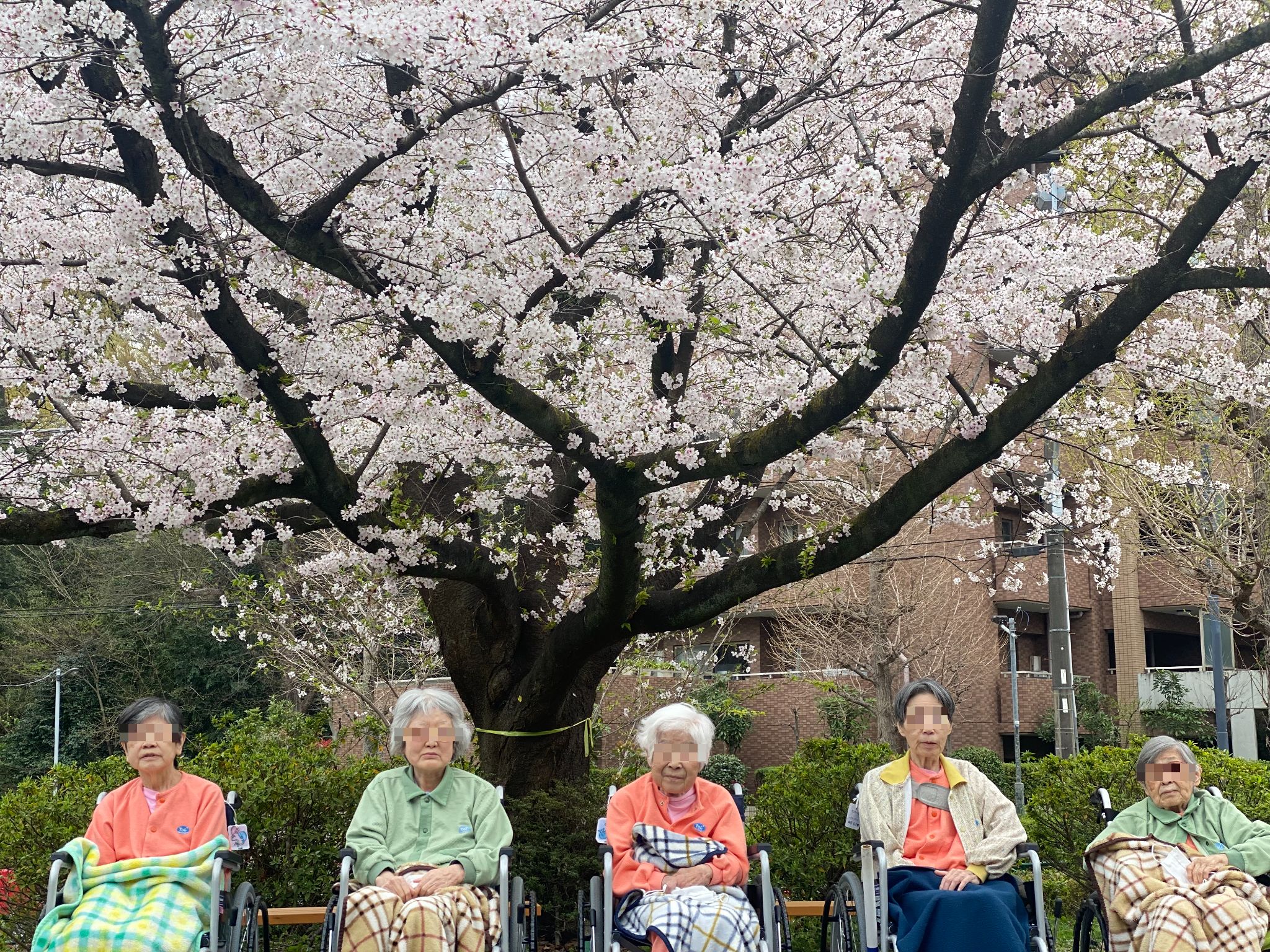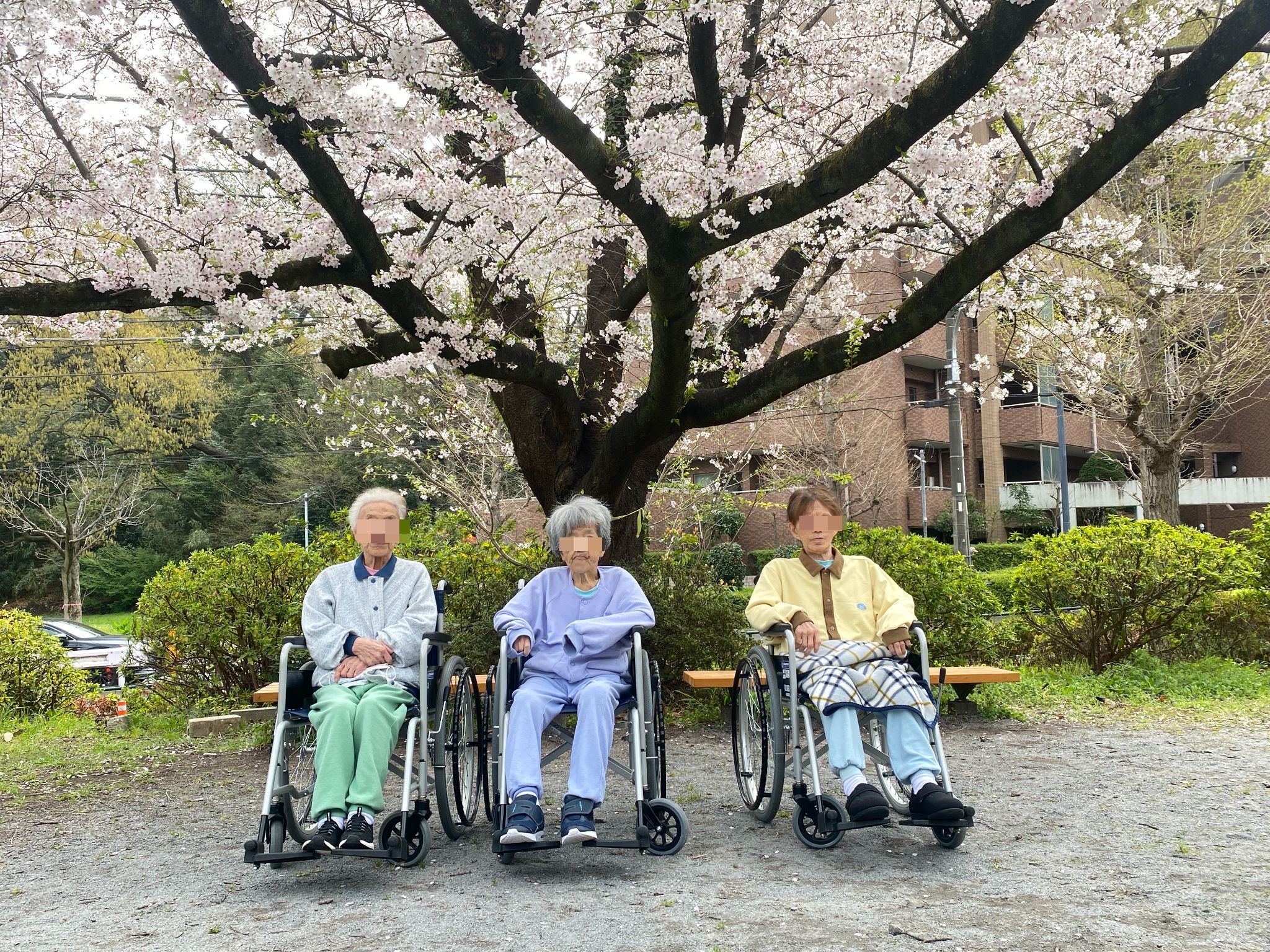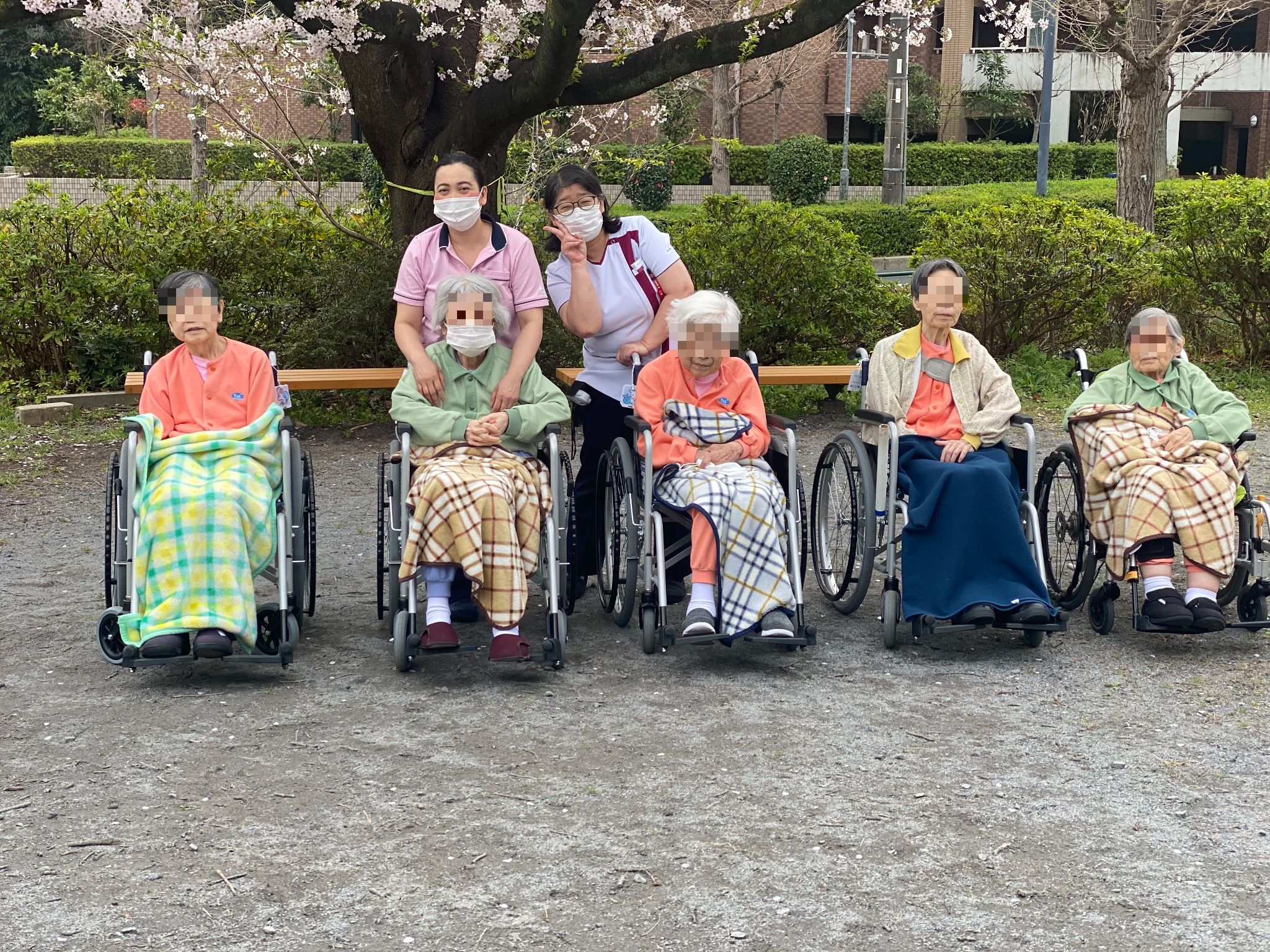 3月30日、暖かく気持ちの良い春の日となり、介護老人保健施設紅梅園から徒歩3分ほどの公園へお花見に出かけました。