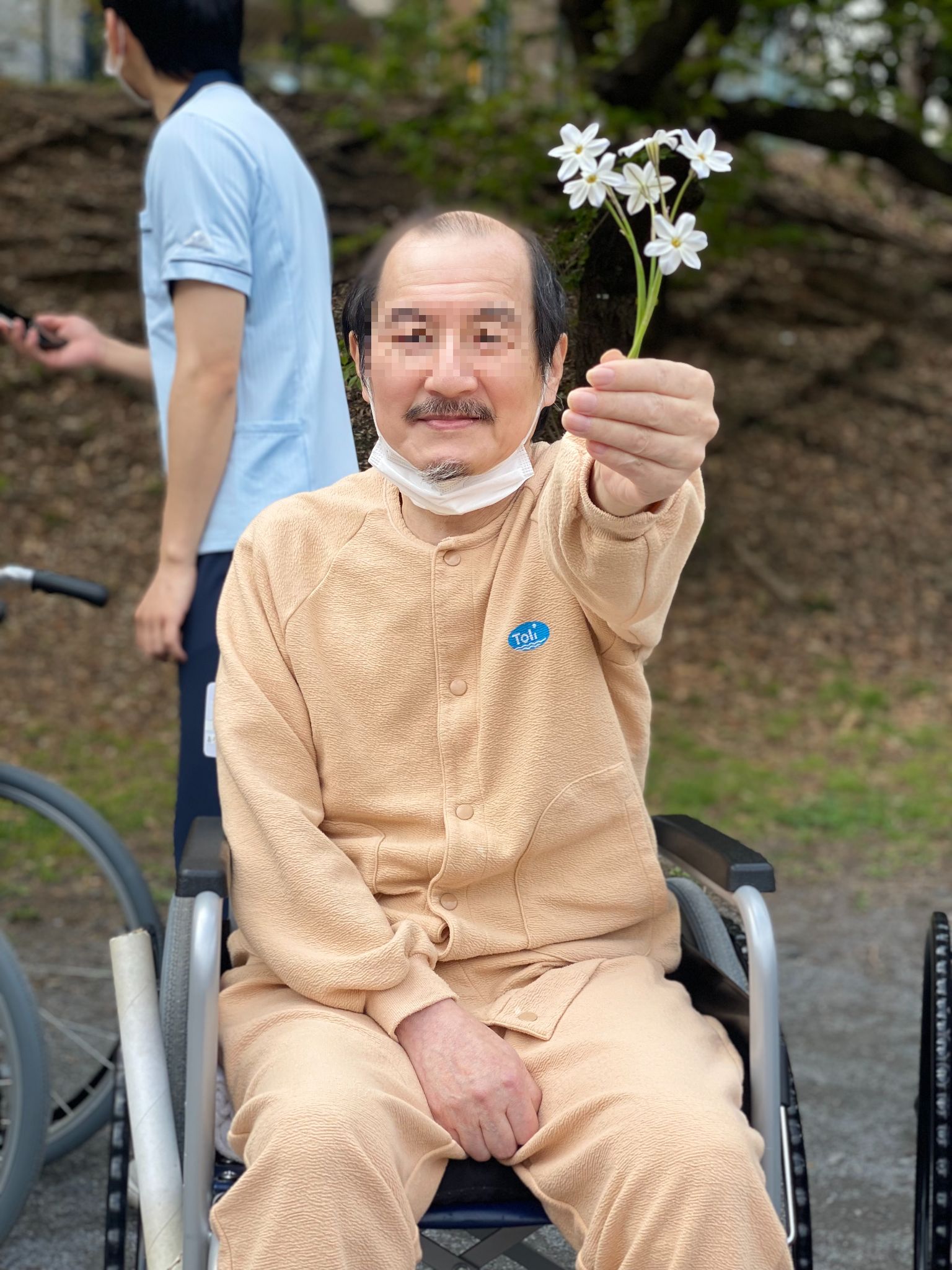 この日はちょうど面会に来られていたご家族もいらっしゃり、一緒にお花見へ。