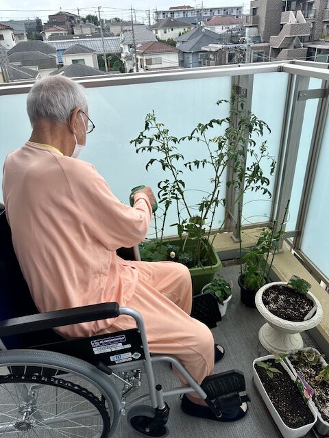 紅梅園5階 プチ菜園より 2024年07月17日 当施設の5階フロアの入所様は土いじりが好きとの事で ベランダにプランターや小さな鉢を置いて【プチ菜園】を楽しんでいます。 種類も様々で、トマト、きゅうり、ケール、いちご、枝豆等々・・・ 少しずつ成長が見られ実がなっている物もチラホラと・・・ 収穫した果実等、美味しく頂けたら良いですね! 紅梅園の5階【プチ菜園】からのご報告でした。
