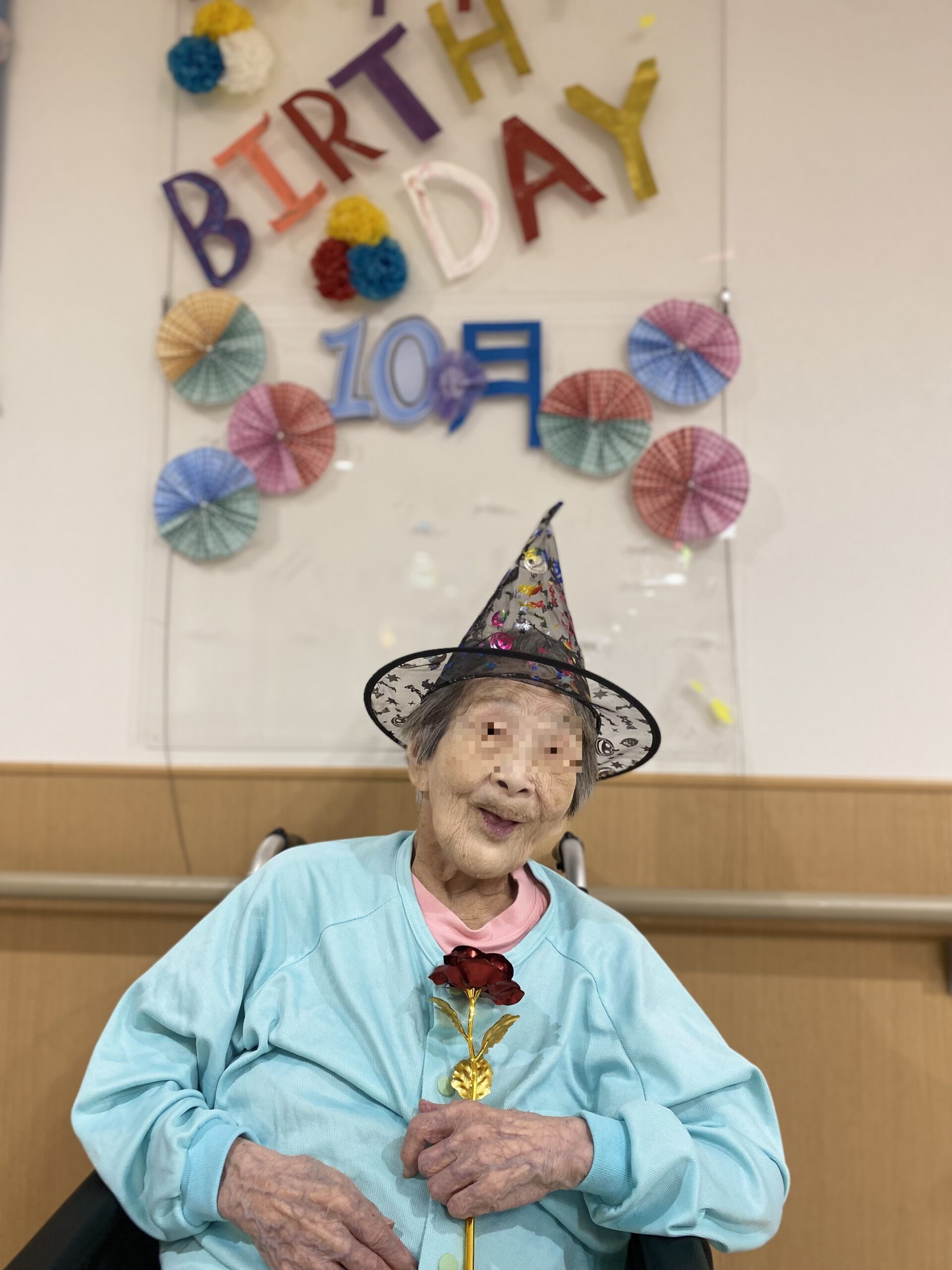 毎月撮影している誕生日月のご利用者様の記念撮影もハロウィンを意識した帽子を被りパチリ✨